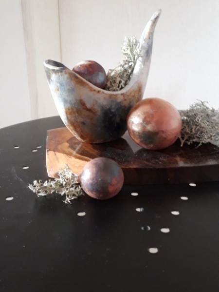 Im Gegensatz zur strengen japanischen Tradition, hat die so genannte westliche Rakutechnik eine eigene Philisophie die den Schwerpunkt auf die Entstehung von besonderen Keramikoberflächen legt.